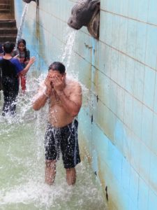 There is a water fountain outside the temple, in which people bath before entering the cave.